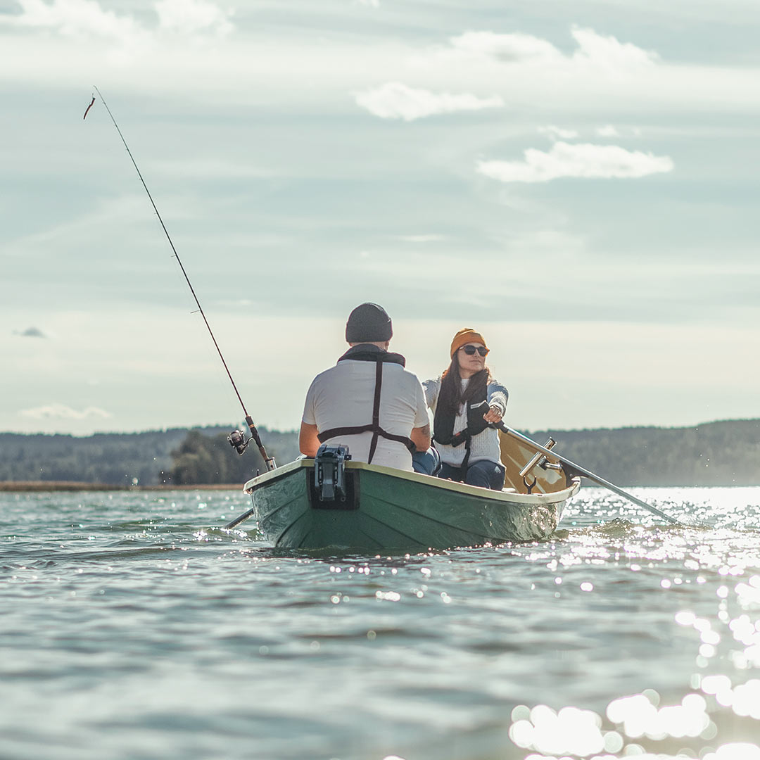 The Päijän rowing boat offers unparalleled stability. The Päijän always features a wide double-hull structure that has flat bottom in the middle, a high keel, and large flotation pontoons on both sides. These features together make our unsinkable boat the best on the market in terms of stability and safety. The hull design and high buoyancy also ensure that the boat is directionally stable, easy to row, and glides smoothly when powered by a motor without unnecessary resistance. If using a larger motor, you can purchase an optional trim tab for the stern, which prevents the stern from sinking and the bow from rising, especially when driving alone