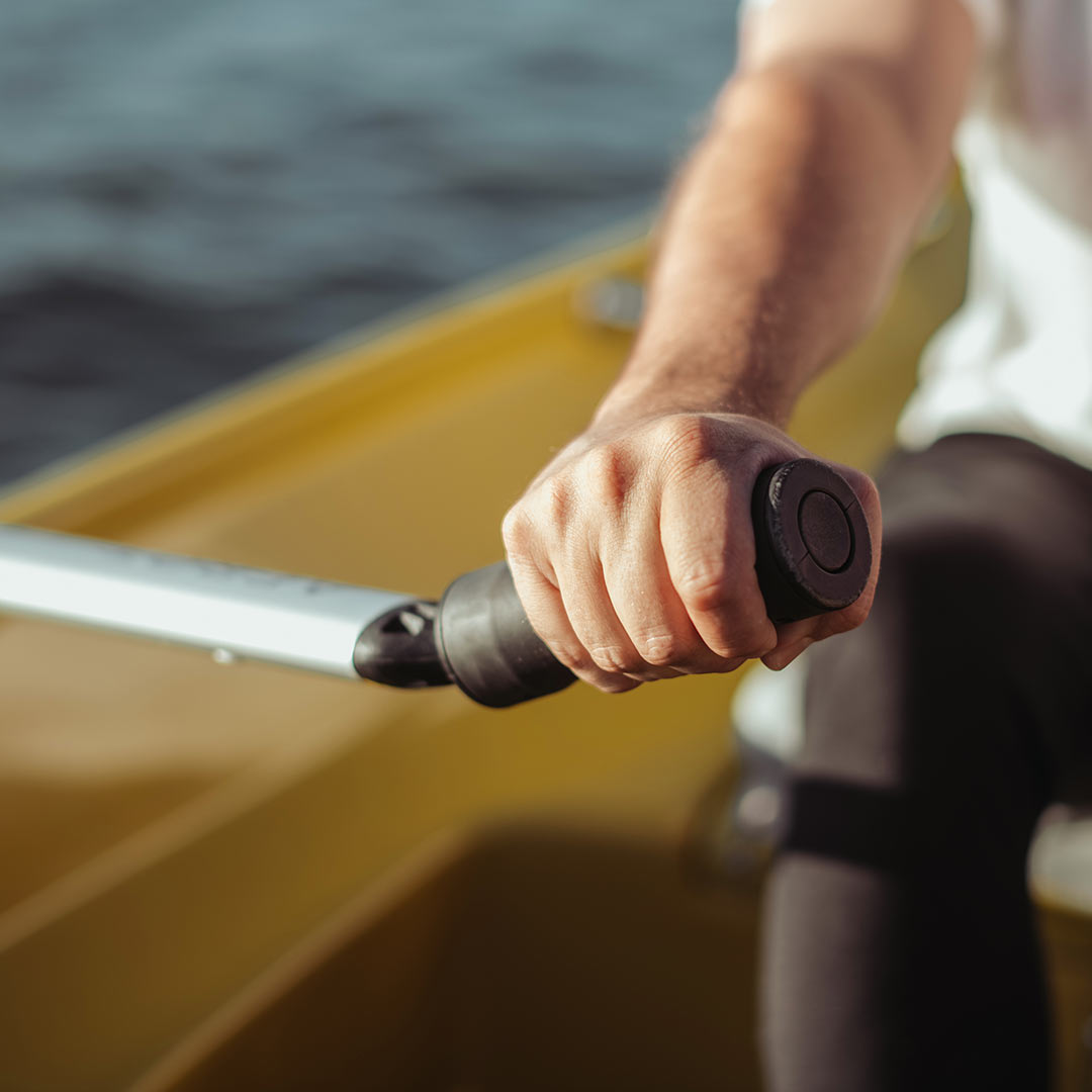 Överlägsen ergonomi. Handtagen är utrustade med mjukt grepp. De böjda handtagen på Ote-modellen roterar. Greppet är tillverkat av termoplastisk elastomer, som ligger bekvämt i händerna. Tack vare ett kontinuerligt justeringssystem är Aerot® åror lämpliga för roddare i alla åldrar och storlekar.