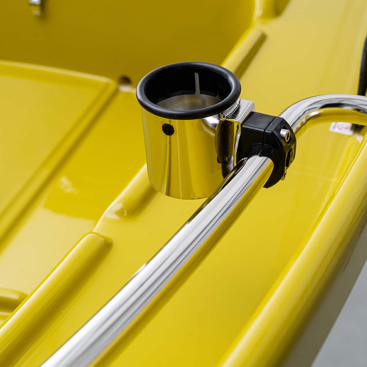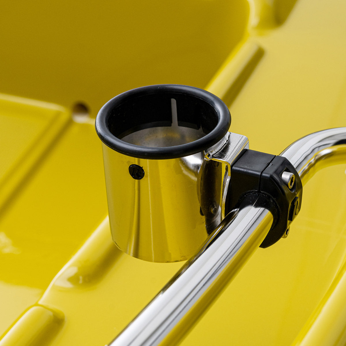 Burkhållare i rostfritt stål med fäste för 25 mm räcke. Håller din dryck upprätt även i de tuffaste vågorna.